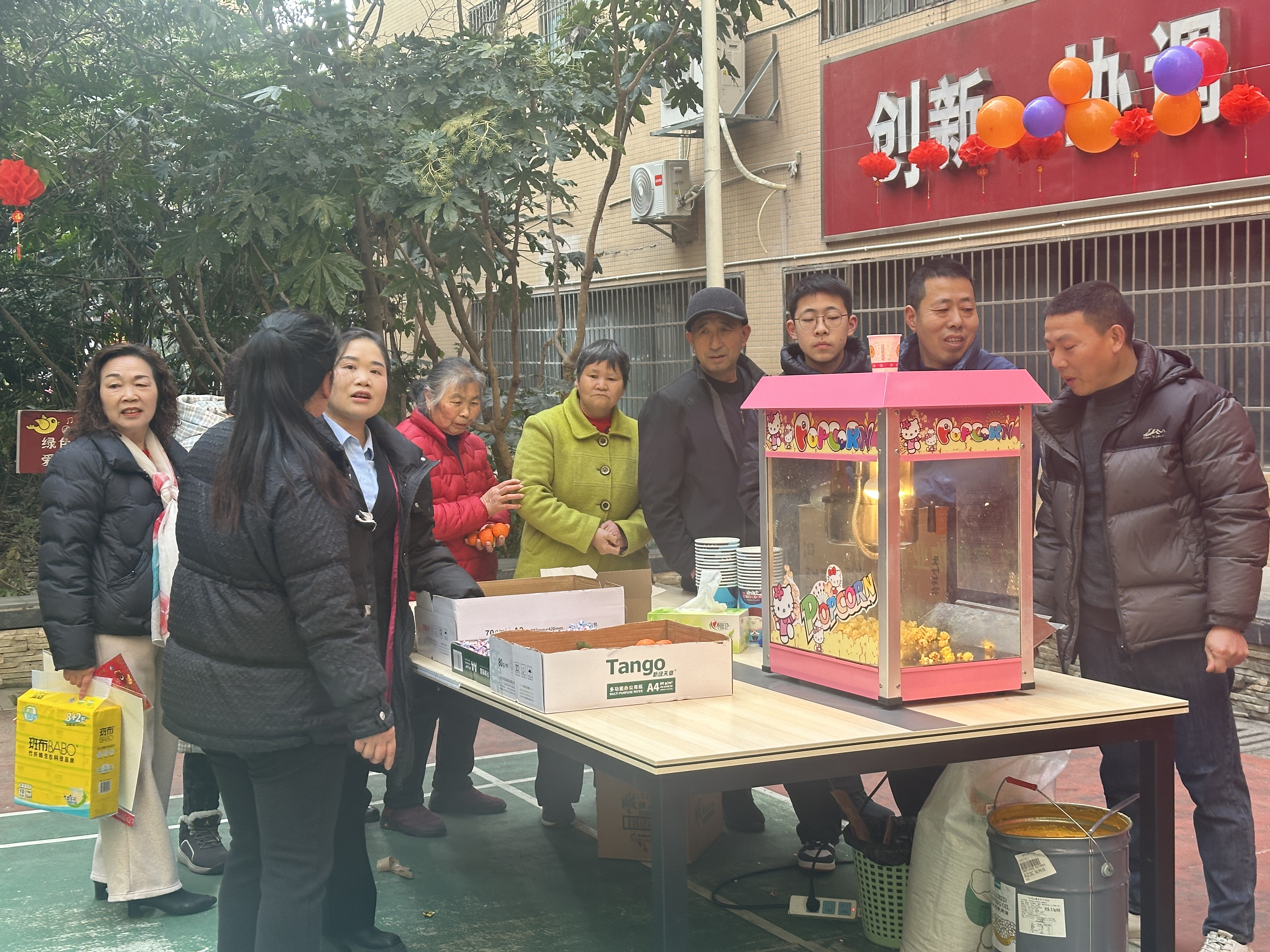 美食发放区香气四溢,工作人员将香甜的爆米花、水果等美食有序递到住户手中,一句句新春问候,让住户真切感受到安馨公寓大家庭的温暖,幸福感满满。